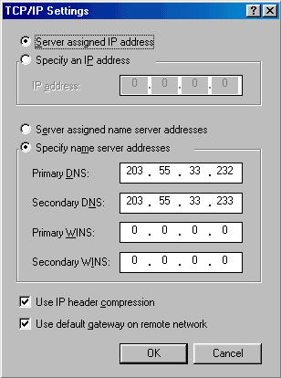 To do this customers are asked to check the setting in your dialup networking connection as well as in the network TCP/IP properties.