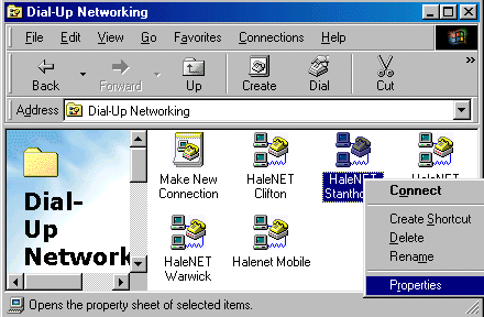 "Right Click with your Right mouse button" on HaleNET xxxxx. This will bring up a menu. Choose the properties option at the bottom of the menu.