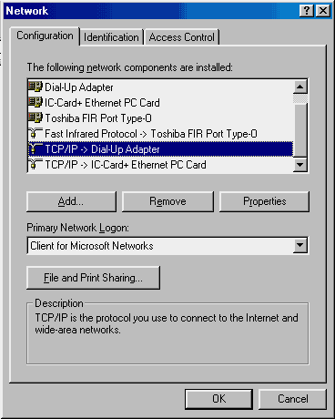 Select TCP/ IP or TCP/IP dialup adapter from the menu options.