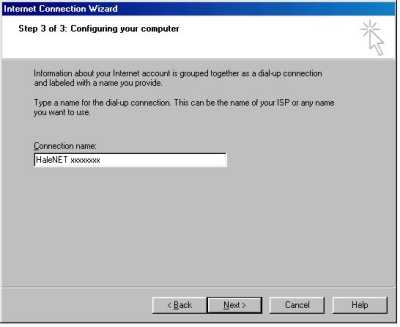 Type the connection name into the Connection name box: ie HaleNET Tenterfield
