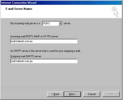 In the incoming and outgoing mail server address fields type.mail.halenet.com.au in lower case